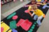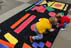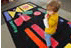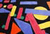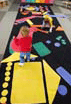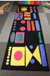 Title: "Blackboard" 6'2" x 18' (Interactive Rug with painted industrial felt shapes)